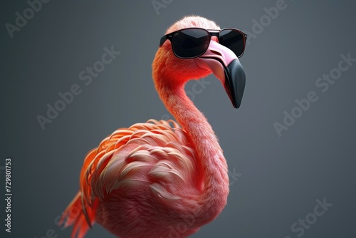 Pink flamingo with cool black sunglasses looks back with a sleek grace.