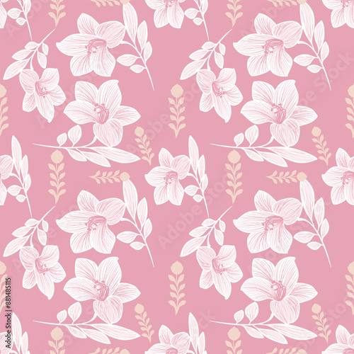 Pink floral themed fabric pattern, and ethnic style embroidery for clothing texture, wrapping, carpet decoration.