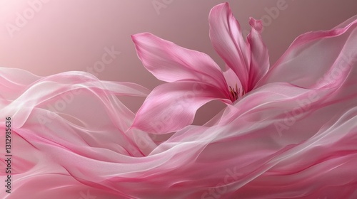 Pink flower blossoms in flowing fabric, soft background