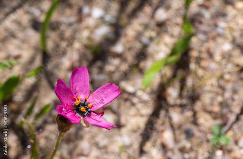 pink flower of the carnivorous plant Drosera cistiflora seen in natural habitat with Copyspacea