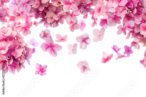 pink flower, pink hydrangea falling isolated on white