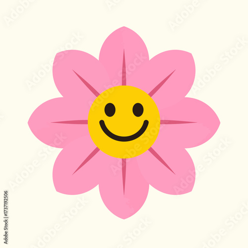 Pink Flower Smiley Face Icon A Cheerful Botanical Graphic