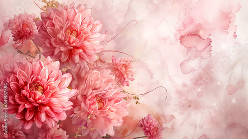 pink flowers background. Texture of pink and gold watercolor patterns. Pink Chrysanthemums flowers, subtle gradient background, with the space for text. Mock up