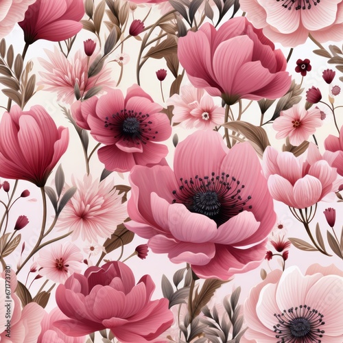 Pink flowers seamless pattern