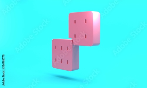 Pink Game dice icon isolated on turquoise blue background. Casino gambling. Minimalism concept. 3D render illustration