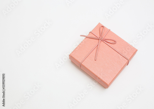 Pink gift box used during Christmas, white background with no copy space.