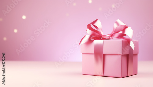 Pink gift box with copy space background