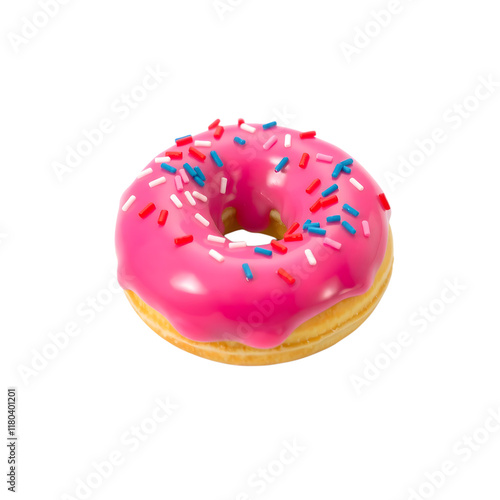 pink glazed donut with colorful sprinkles, ideal for food-related designs, dessert presentations or bakery promotions showcasing sweetness and indulgence.
