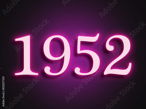 Pink glowing Neon light text effect of number 1952.