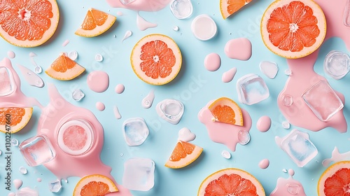 Pink Grapefruit Smoothie Flat Lay: Summery Food Photography on Pastel Blue AI Generated
