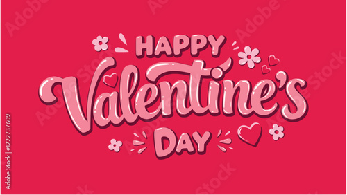 Pink Happy valentines day horizontal banner with hearts and flowers-01