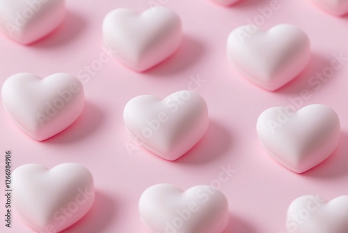 Pink heart candies on pink backdrop, romance, wedding invitation or gift card