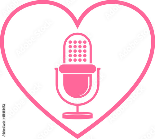 Pink heart shape with podcast microphone inside