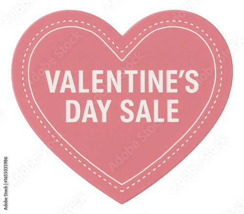Pink heart sticker with VALENTINE'S DAY SALE text in bold, attractive retail discount promo on transparent background.