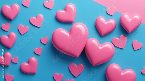 Pink hearts border on blurred background blue theme
