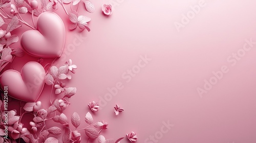 Pink hearts, flowers, romantic background, Valentine's Day card design