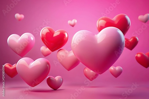 pink hearts on a red background 8 March. Women's Day pink heart banner for the website.
