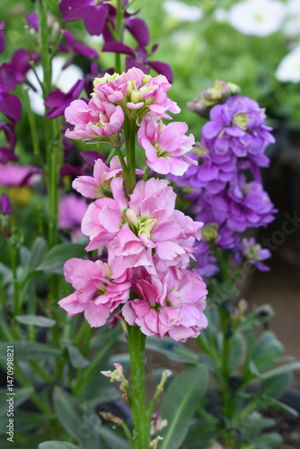 Pink Hoary Stock, Pink Hoary Stock or Matthiola Incana is a member of the Brassicaceae family of flowering plants. It's also commonly known as Brompton Stock, Common Stock, Pink flower in garden
