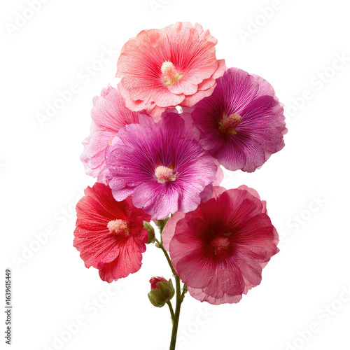 Pink hollyhocks bouquet, garden bloom, close-up, black background, floral arrangement