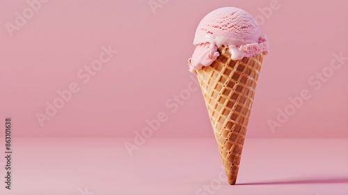 Pink Ice Cream Cone on a pink Background with Copy Space