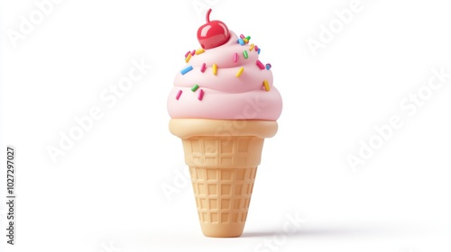 Pink Ice Cream Cone with Cherry and Sprinkles