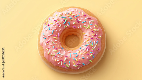 Pink Icing Donut with Sprinkles on Pastel Yellow Background