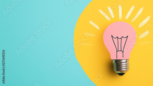 pink light bulb illustration on vibrant yellow and blue background symbolizes creativity and innovation