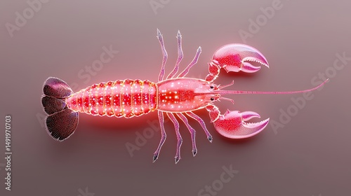 Pink Lobster Pixel Art Illustration on Neutral Background