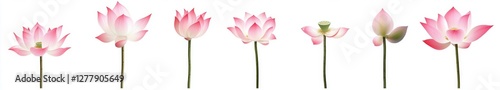 Pink lotus flower growth stages, white background, graphic design