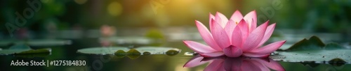 Pink Lotus Flower in Water with Sunlight Filter, natural light, water scene