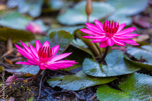 Pink Nymphaea Water lily or Pink Lotus Flower on the lotus lake - Beautiful Flower nature backdrops in park garden concept