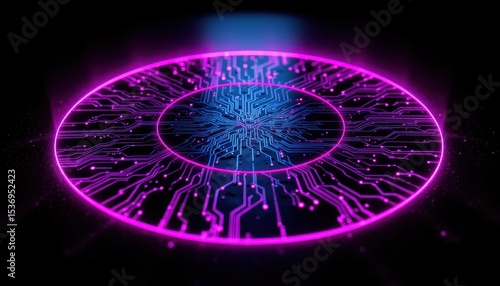 Pink orb on intricate computer circuit, a glimpse into modern technology glowing