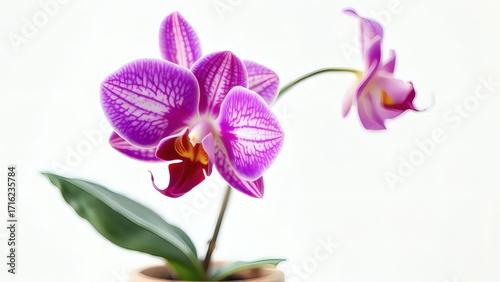 Pink Orchid Flower in Pot on White Background – Elegant Tropical Plant Photography