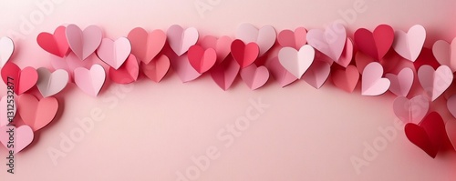 Pink Paper Hearts Border Valentine's Day Composition, love, romance Valentine's Day, paper crafts