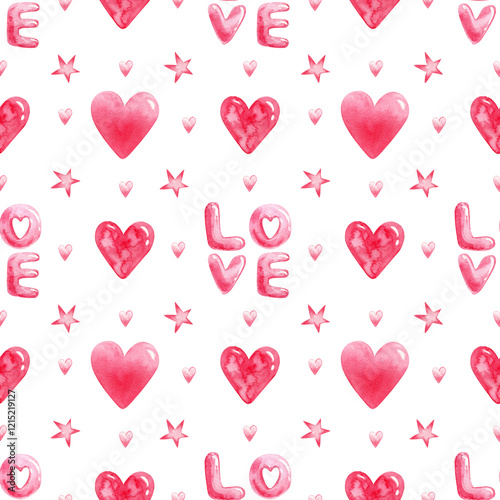 Pink pattern with hearts, seamless background. Romantic background, great for Valentine's Day, wedding, textile, wallpaper, banner - watercolor design