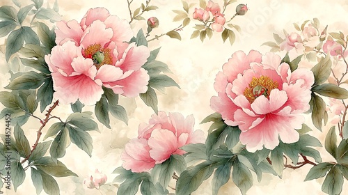 Pink peony in traditional Chinese painting style