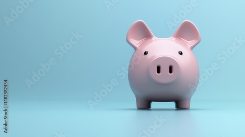 Pink Piggy Bank Against Light Blue Background Represents Saving Money and Financial Planning