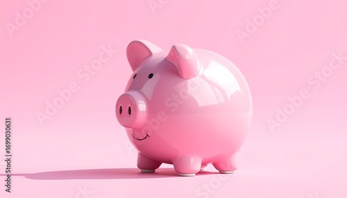 Pink piggy bank casts a shadow on matching background, symbolizing savings and financial concepts