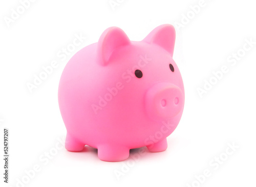Pink piggy bank isolated on white background.