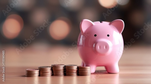 Pink piggy bank with coins. The concept of savings and accumulation of funds