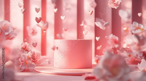 Pink Podium With Hearts And Flowers Falling