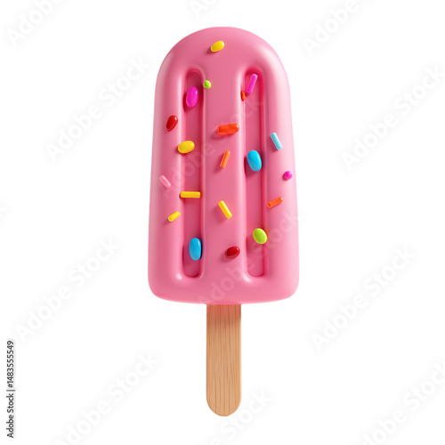 Pink Popsicle with Sprinkles Delicious Summer Treat Image isolated on transparent background