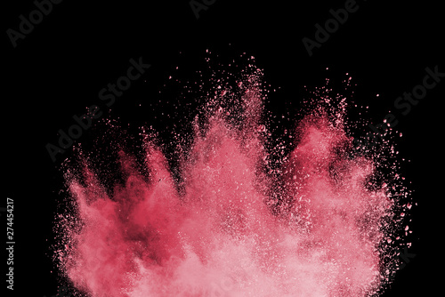 Pink powder explosion on dark background. Paint Holi.
