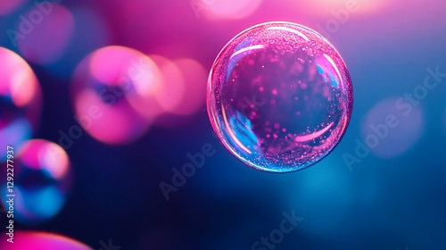 Pink purple neon bubble, abstract background, futuristic design, website banner