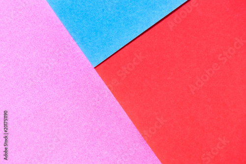 Pink, red and blue color paper display as abstract blank background