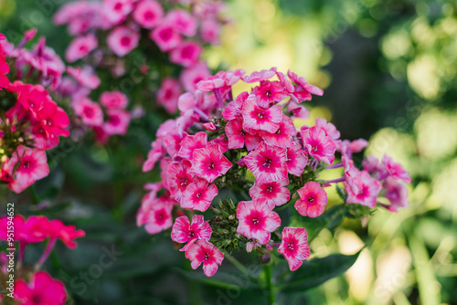 Pink Red flowers panicle phlox Stars and Stripes in garden