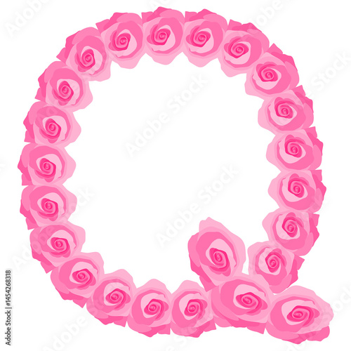 Pink Rose alphabet, letters Q perfectly for wedding invitations, greeting card, logo, poster and other design
