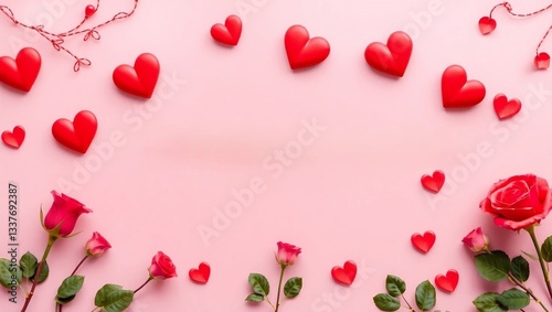 Pink Rose Petals and Tulips Heart Shape Seamless Pattern for Valentine’s Day Romance and Wedding Gift Design, ai generated