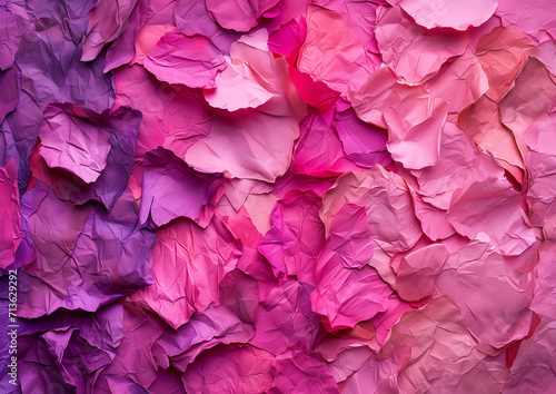 Pink rose petals paper background, wedding love, romance card template texture. Unique flower petal made from abstract handmade paper. Delicate pink, purple bouquet for trendy love by Vita