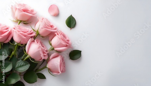 Pink Roses and Peonies Bouquet Isolated on White Background with Copy Space